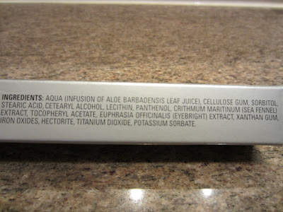 Ingredients: Water/Eau/Aqua, Hydrolyzed Jojoba Esters, Glycerin, Titanium Dioxide, Stearic Acid, Cyclomethicone, Tribehenin, Glyceryl Stearate, PEG-100 Stearate, Superoxide Dismutase, Camellia Sinensis (Green Tea) Leaf Extract, Salix Alba (Willow) Bark Extract, Magnesium Ascorbyl Phosphate (Vitamin C), Vanilla Tahitensis Fruit Extract, Prunus Amygdalus Dulcis (Sweet Almond) Seed Extract, Bisabolol, Xanthan Gum. May Contain: Iron Oxides.